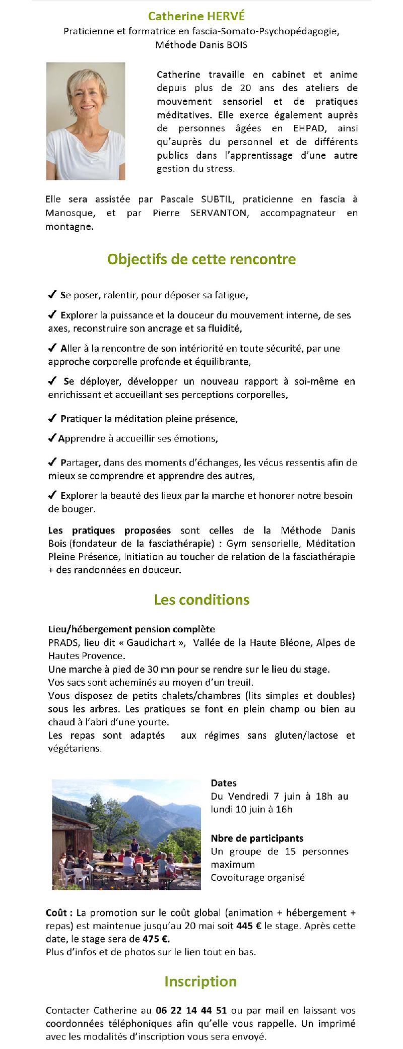 Stage au Beauvais en Bourgogne (58330 St-Saulge) Du jeudi 26 mars au lundi 30 mars Du jeudi 2 avril au lundi 6 avril Animé par Marie France [...]