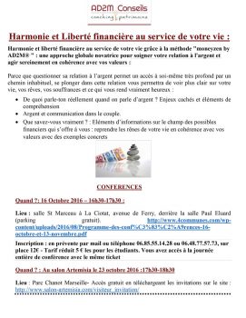 Conférences, Stages, Formations, Evènements : dans le BIEN-ÊTRE ET LE DEVELOPPEMENT PERSONNEL