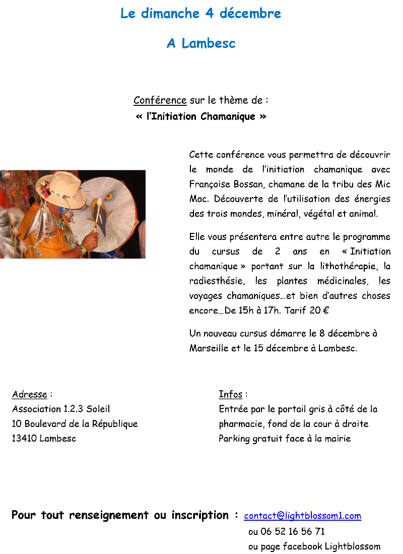 Conférences, Stages, Formations, Evènements : dans le BIEN-ÊTRE ET LE DEVELOPPEMENT PERSONNEL