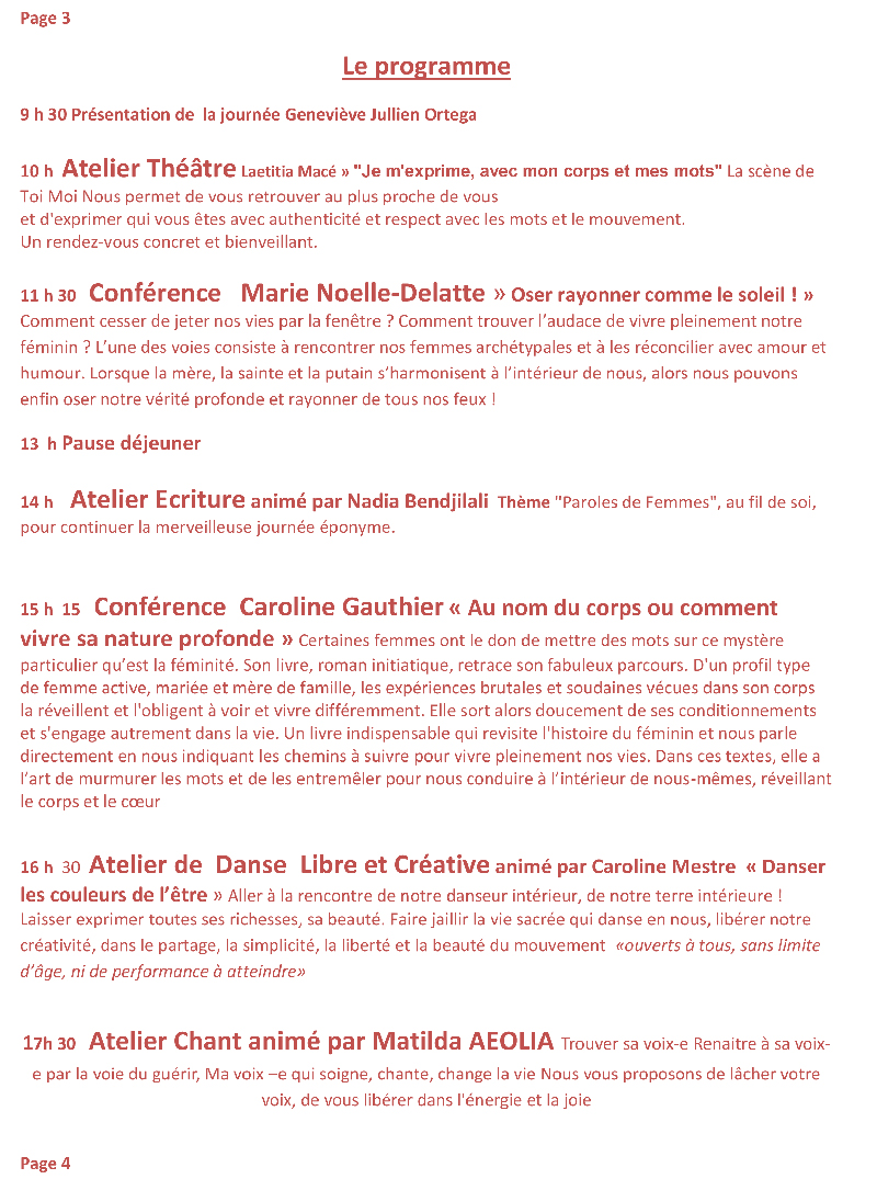 12:00 AM - "Le Pardon" stage animé par Marie France O'leary